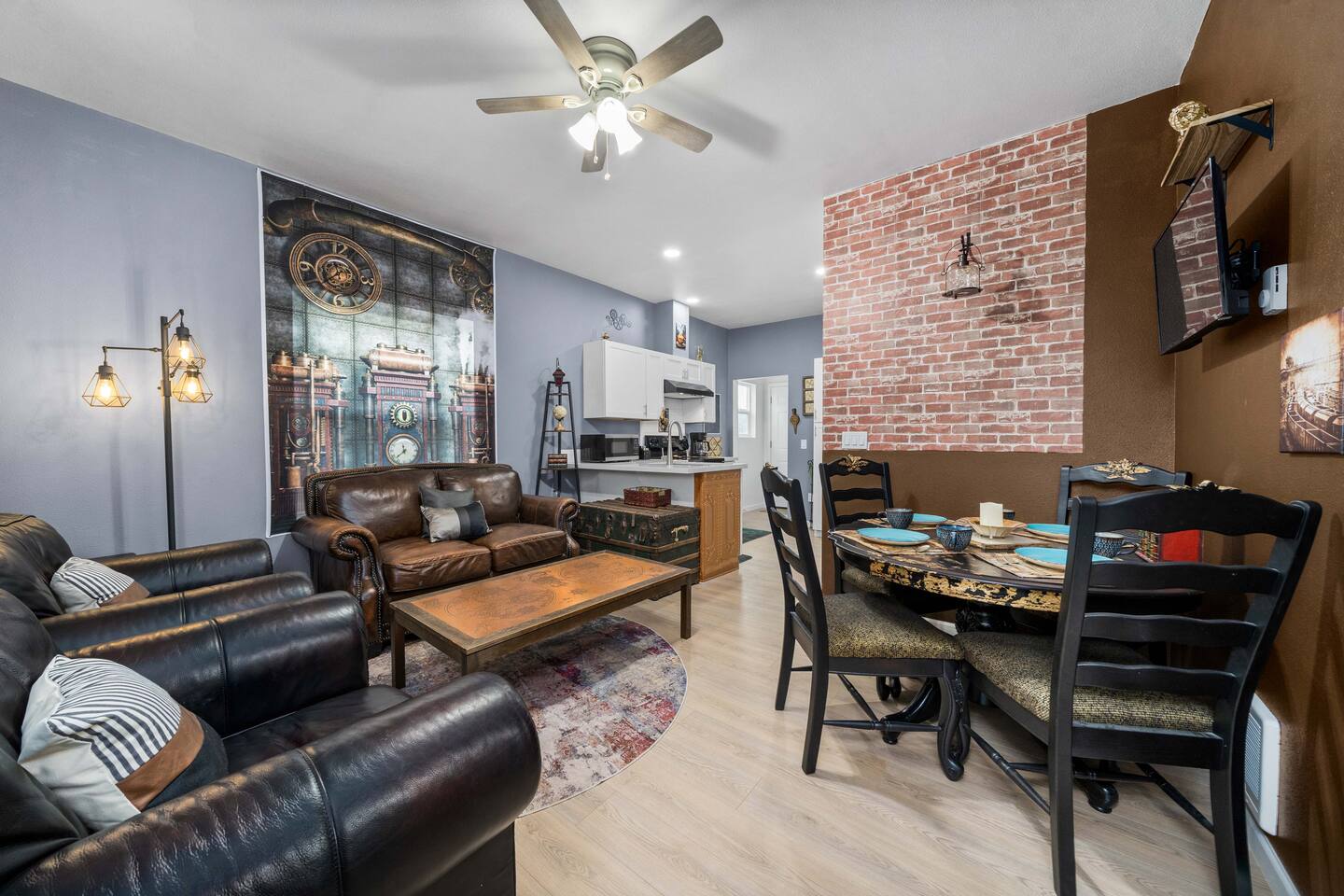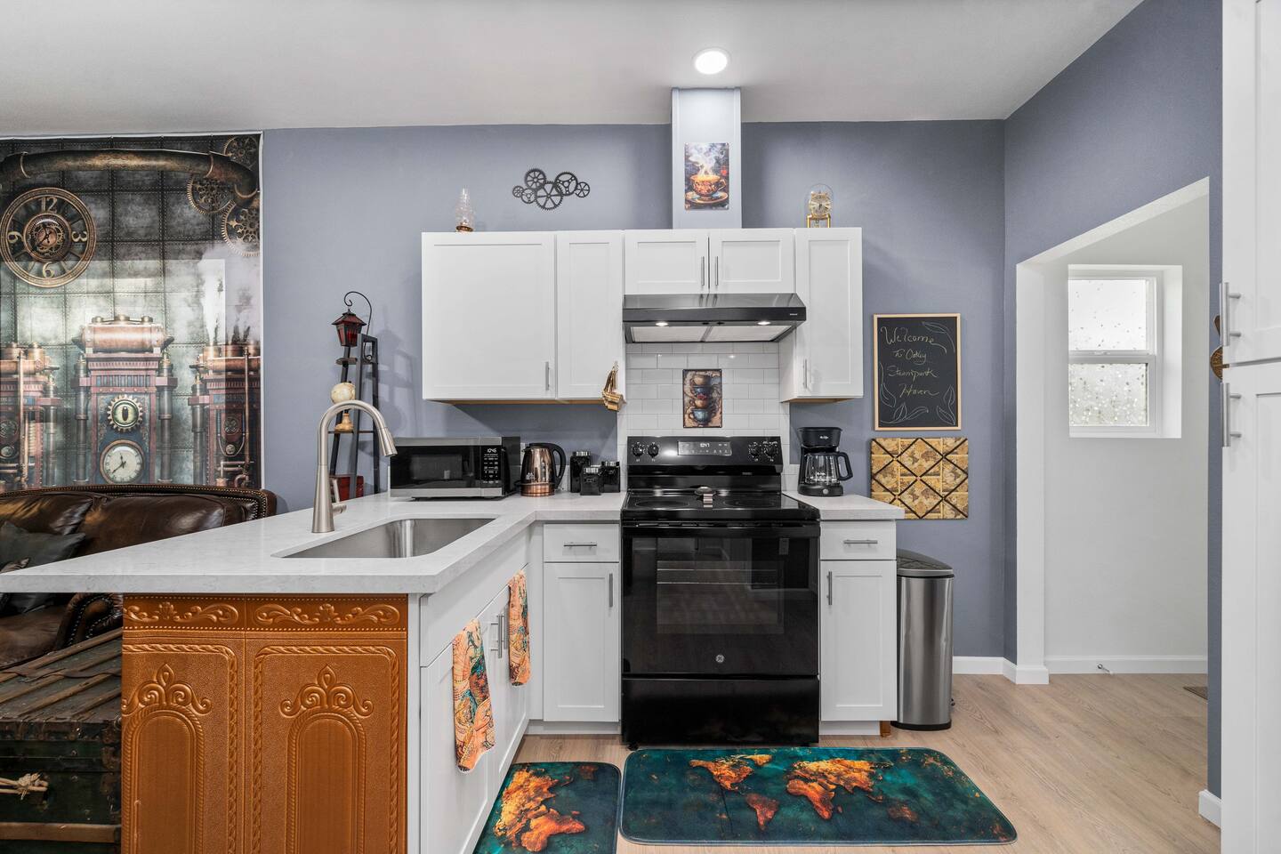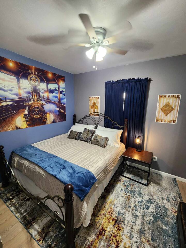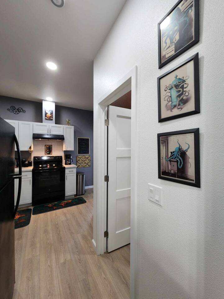 With the city's roots in the Industrial Revolution, its bustling ports, and historic railroads Tacoma is a hub for transportation and trade—a key theme in Steampunk culture. The proximity to ports adds a maritime charm, blending steam-powered innovation with nautical vibes. Our location immerses guests in a living storybook of gears, steam, and adventure. Just 30 minutes from SeaTac airport, this two-bedroom haven has easy access to I-5, parks, waterfront, museums, bustling downtown restaurants, shops, concerts, and live entertainment. Have a cozy night in, explore one of the many local parks, or continue to South Tacoma Way and immerse yourself in the vibrant nightlife. Many options are just outside our door, and if venturing further into the city, public transportation is available directly across the street.